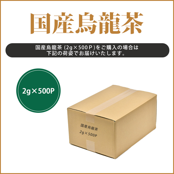| 注意事項 | テトラ型ティーバッグ ※沸騰したお湯500mLに対し1ティーバッグが目安です。お湯を注ぎ、約1分間で美味しい烏龍茶が出来上がります。味の濃淡はお好みに応じ、お湯の量、浸出時間、分包数で加減してください。 |